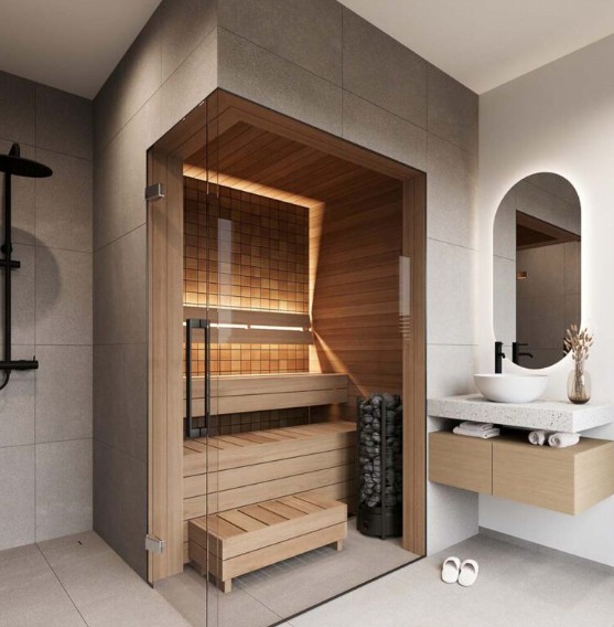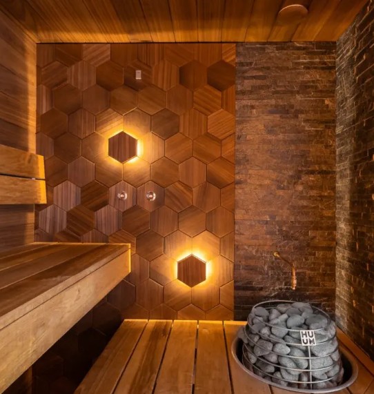 Innovative LED lighting is suitable for both ordinary interiors and saunas, giving the room coziness and creating a cozy atmosphere.